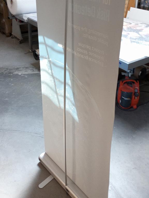 Roll-up Alu Classique Format : 85 x 200 cm Support : Bâche 500g Frontlit Impression : Recto couleurs (quadri)