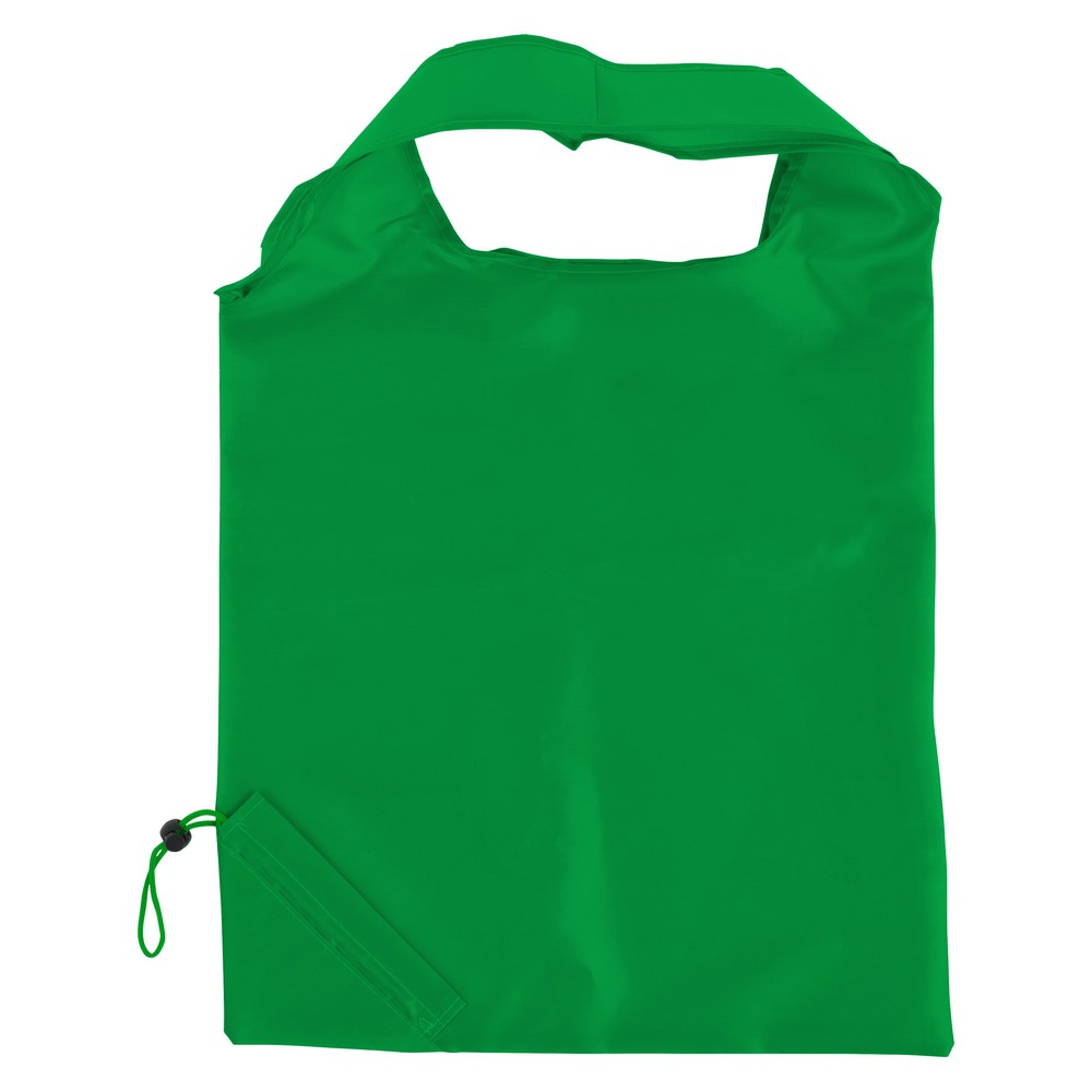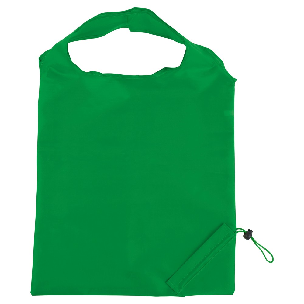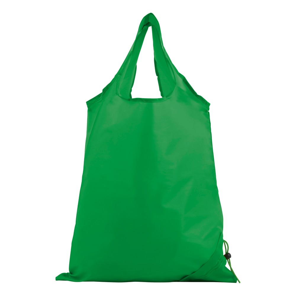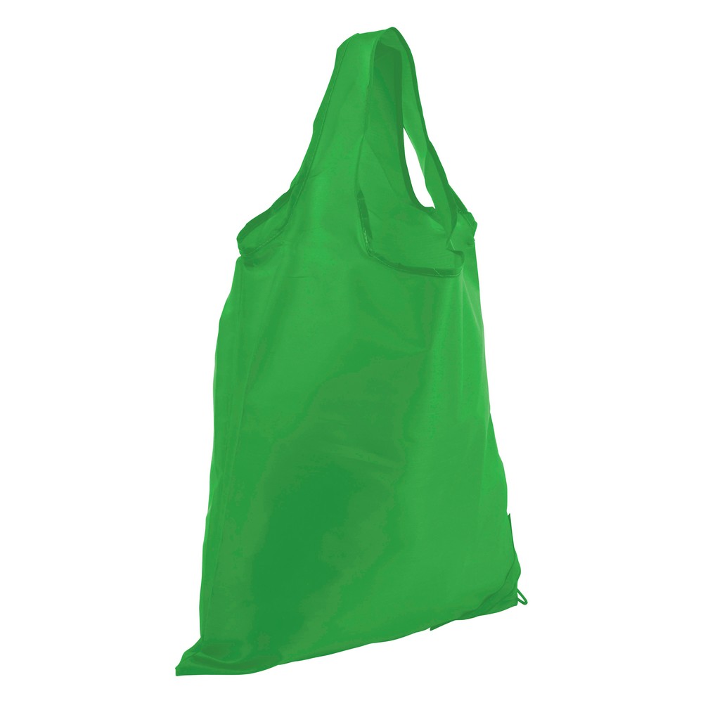 Description : Sac shoppingpliable, plié dans le coin avec une ficelle et un bouchon en plastique