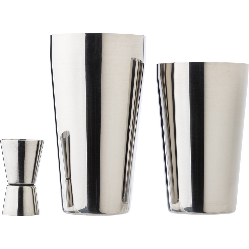 Description : Service à cocktail en inox, shaker 750 ml, gobelet doseur 30 ml, cuillère, tamis, pochon coton