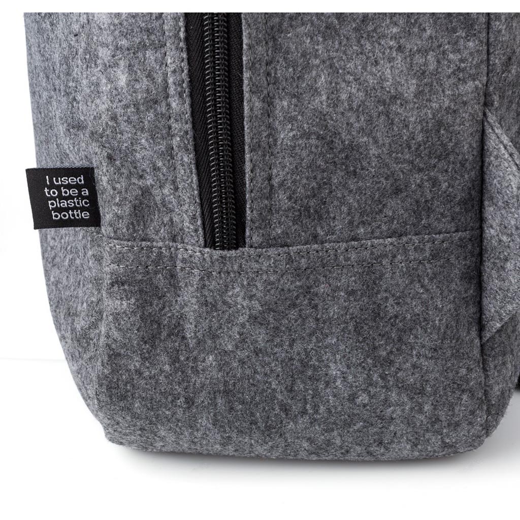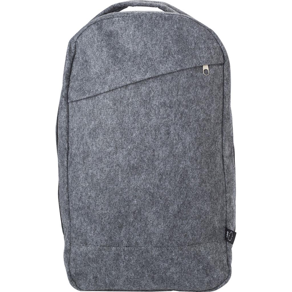 Description : Sac à dos en feutre RPET, poche frontale zippée et compartiment principal