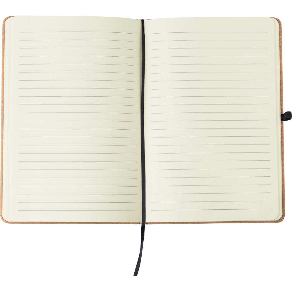 Description : Carnet A5 en cuir recyclé (100 feuilles lignées), ruban marque-page, élastique pour fermeture