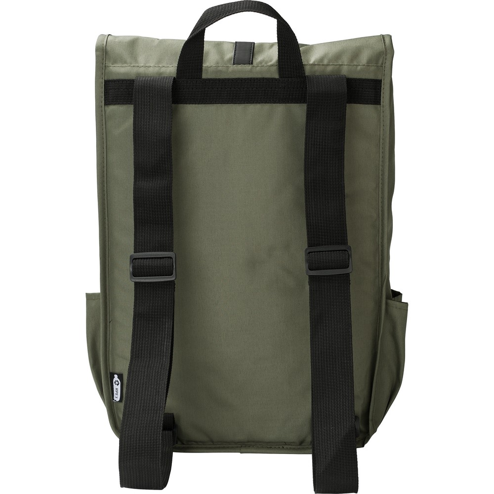 Description : Sac à dos avec rabat en RPET, deux poches latérales, compartiment principal spacieux, fermé par une boucle